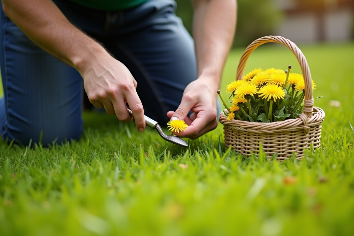 Un couteau désherbeur à long manche, par exemple, s’avère redoutable pour retirer la racine pivotante sans endommager le gazon. Plantez l’outil à la base, tirez d’un coup franc : la racine doit sortir d’un seul tenant. Cette opération est plus facile après une averse, quand la terre est meuble.